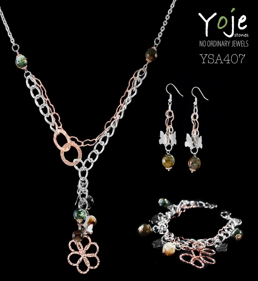 Descrizione: PARURE COMPLETA COMPOSTA DA COLLANA BEVERLY, BRACCIALE E ORECCHINI, MONTATA IN ACCIAIO 316L E PIETRE DURE NATURALI