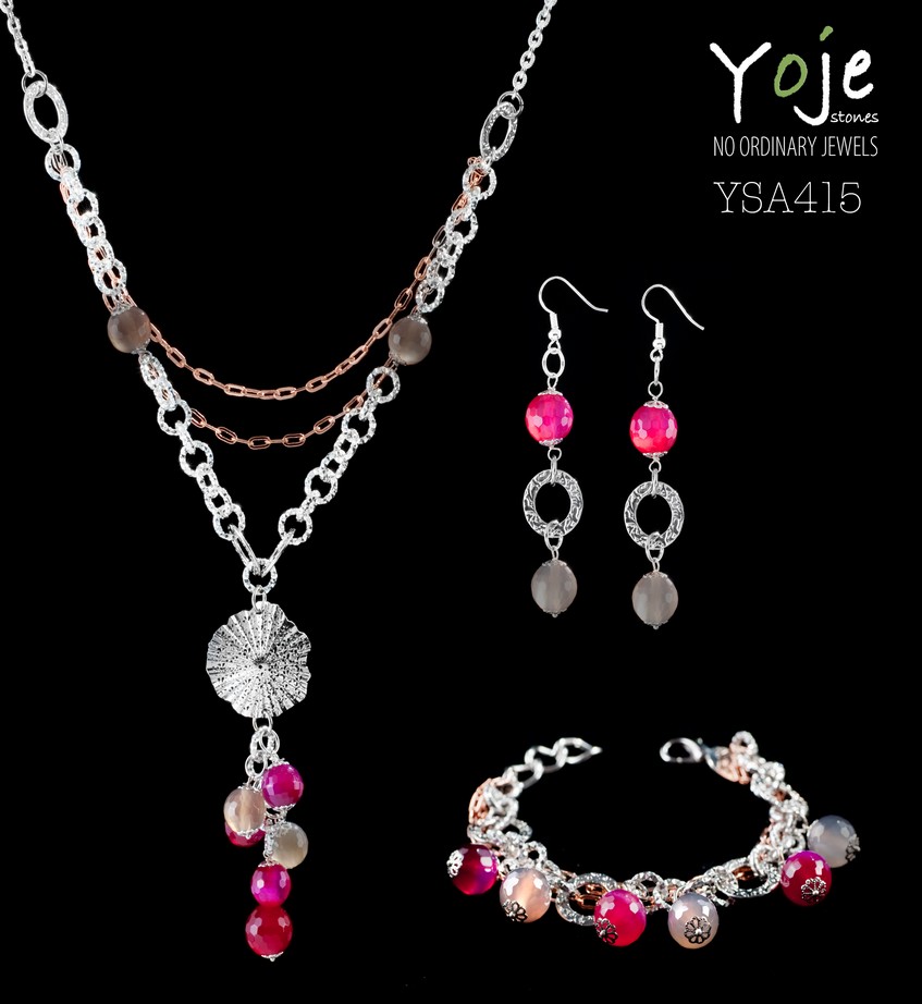 Descrizione: PARURE COMPLETA COMPOSTA DA COLLANA BEVERLY, BRACCIALE E ORECCHINI, MONTATA IN ACCIAIO 316L E PIETRE DURE NATURALI