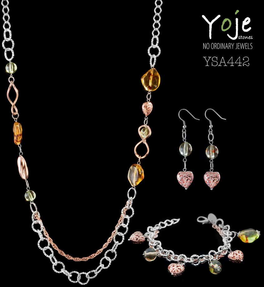 Descrizione: PARURE COMPLETA COMPOSTA DA CHANEL, BRACCIALE E ORECCHINI, MONTATA IN ACCIAIO 316L E PIETRE DURE NATURALI