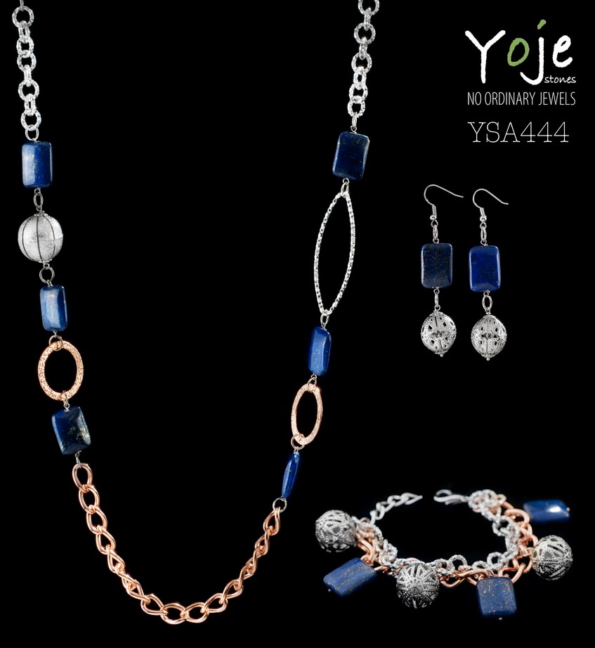 Descrizione: PARURE COMPLETA COMPOSTA DA CHANEL, BRACCIALE E ORECCHINI, MONTATA IN ACCIAIO 316L E PIETRE DURE NATURALI