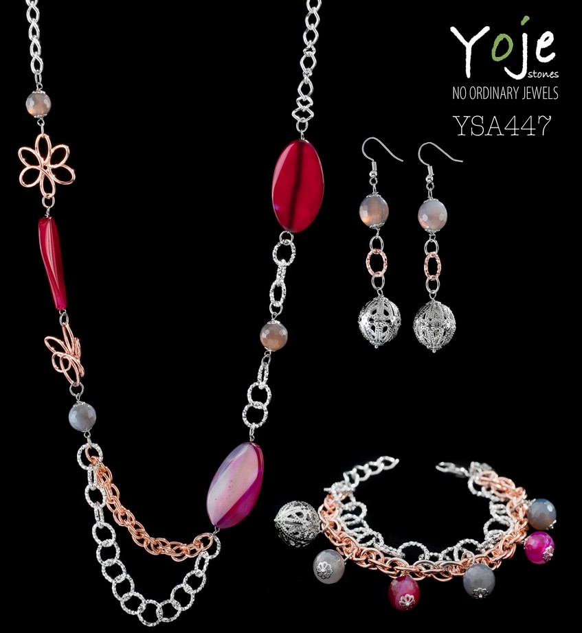 Descrizione: PARURE COMPLETA COMPOSTA DA CHANEL, BRACCIALE E ORECCHINI, MONTATA IN ACCIAIO 316L E PIETRE DURE NATURALI