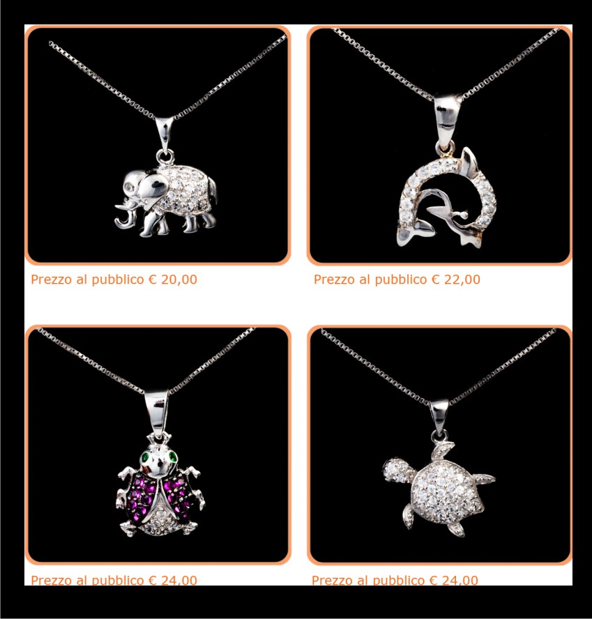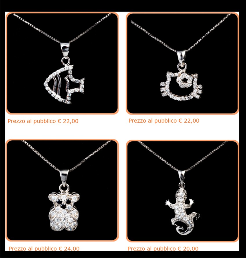 Descrizione: Collezione composta da 14 pendenti in arg.925% rodiato e zirconi naturali con veneziana da 42 cm