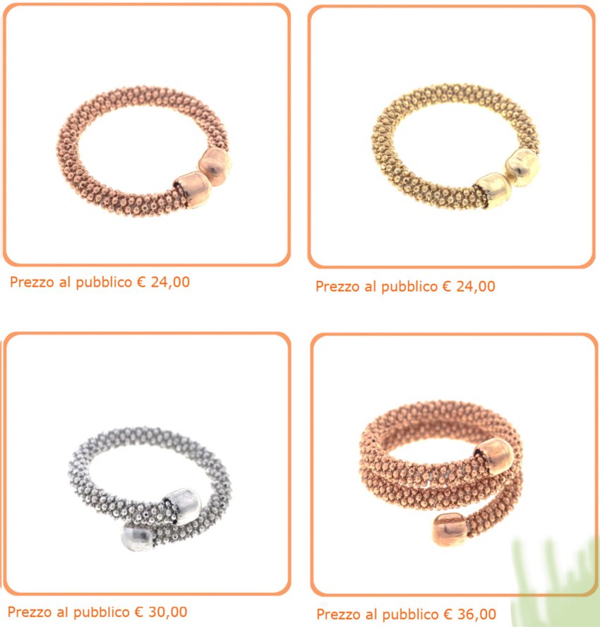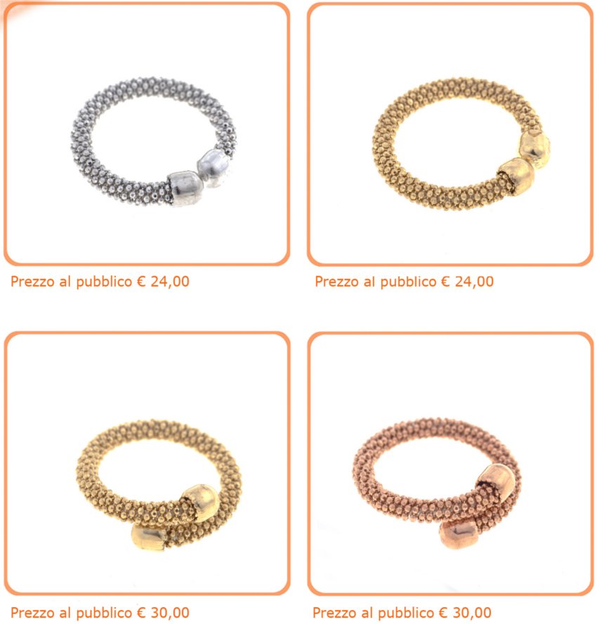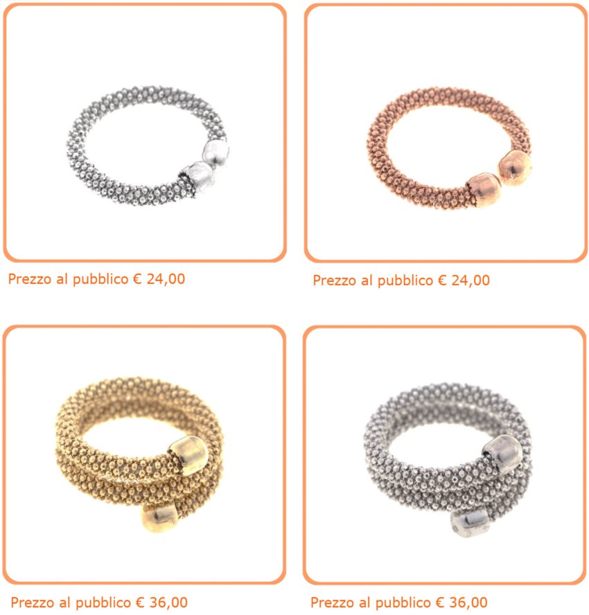 Descrizione: Collezione composta da 12 anelli in Arg.925/°° , regolabili rodiati nei tre colori