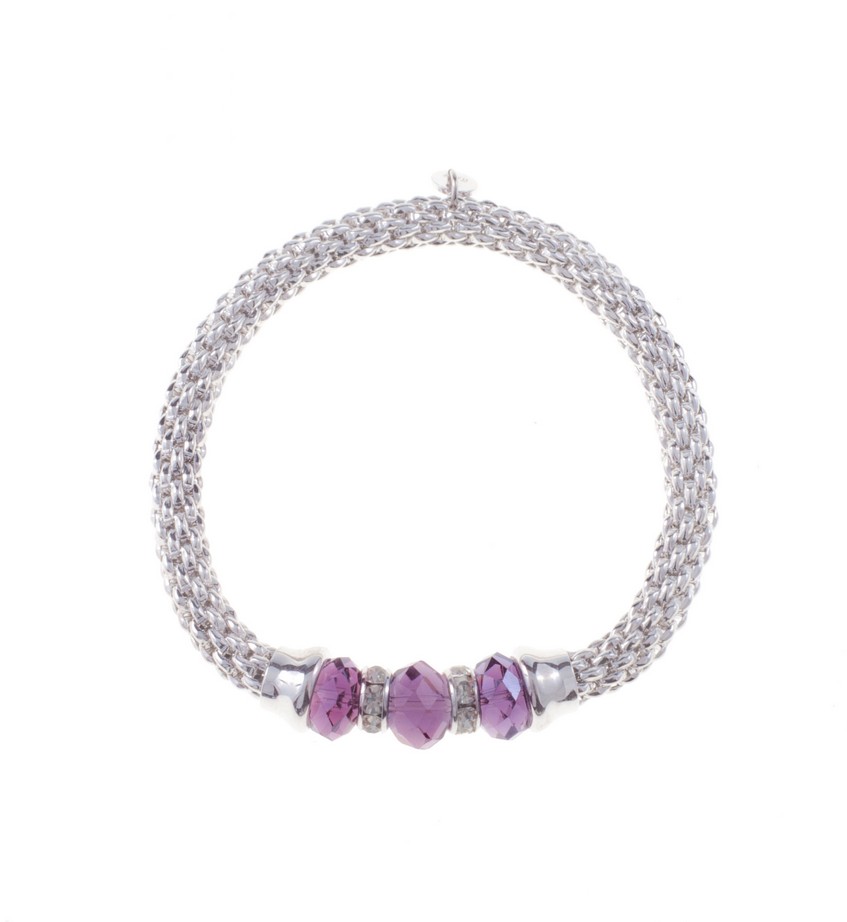 Descrizione: BRACCIALE SEMIRIGIDO FINITURA RODIATA E SWAROVSKY VIOLA