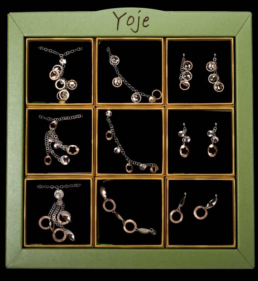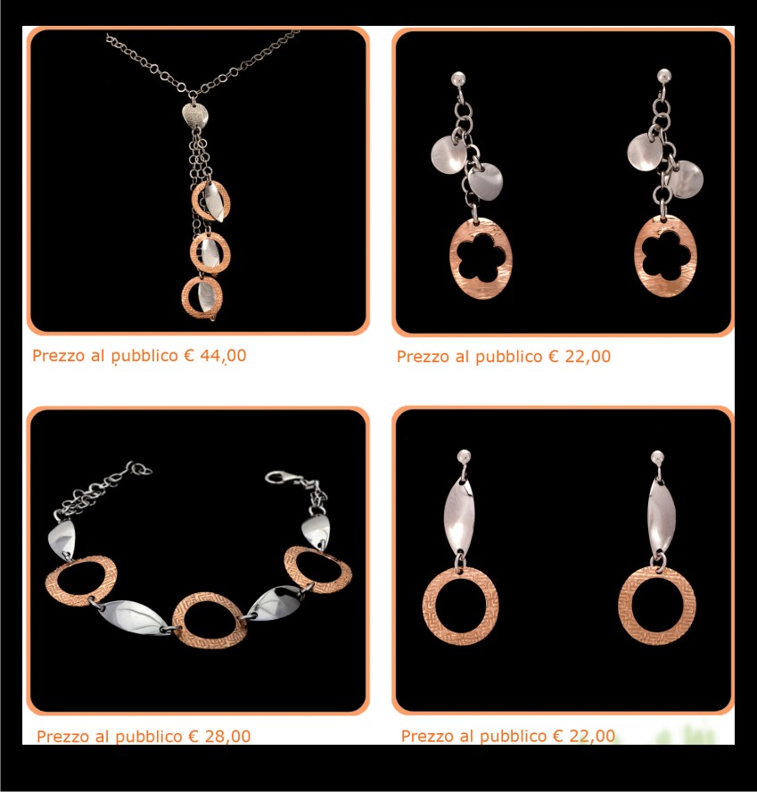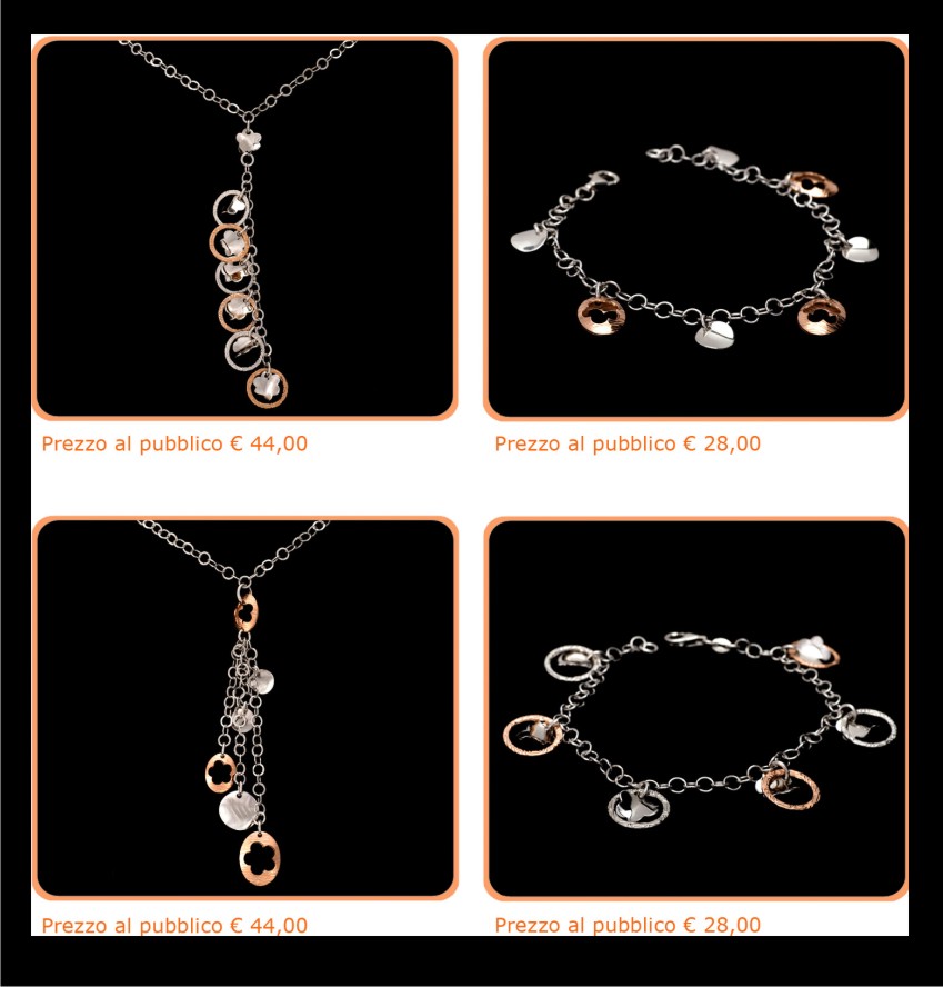 Descrizione: Collezione composta da 3 parure collane , bracciale e orecchini in Arg.925% rodiato e bicolore