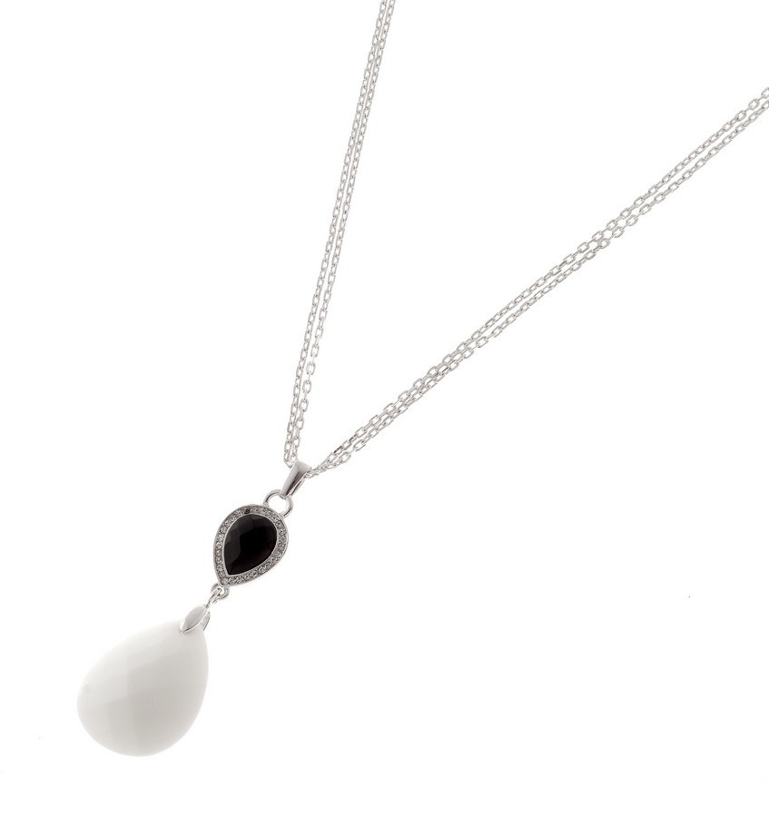Descrizione: COLLANA CON PENDENTE AGATA BIANCA E ONICE NERA CON ZIRCONI