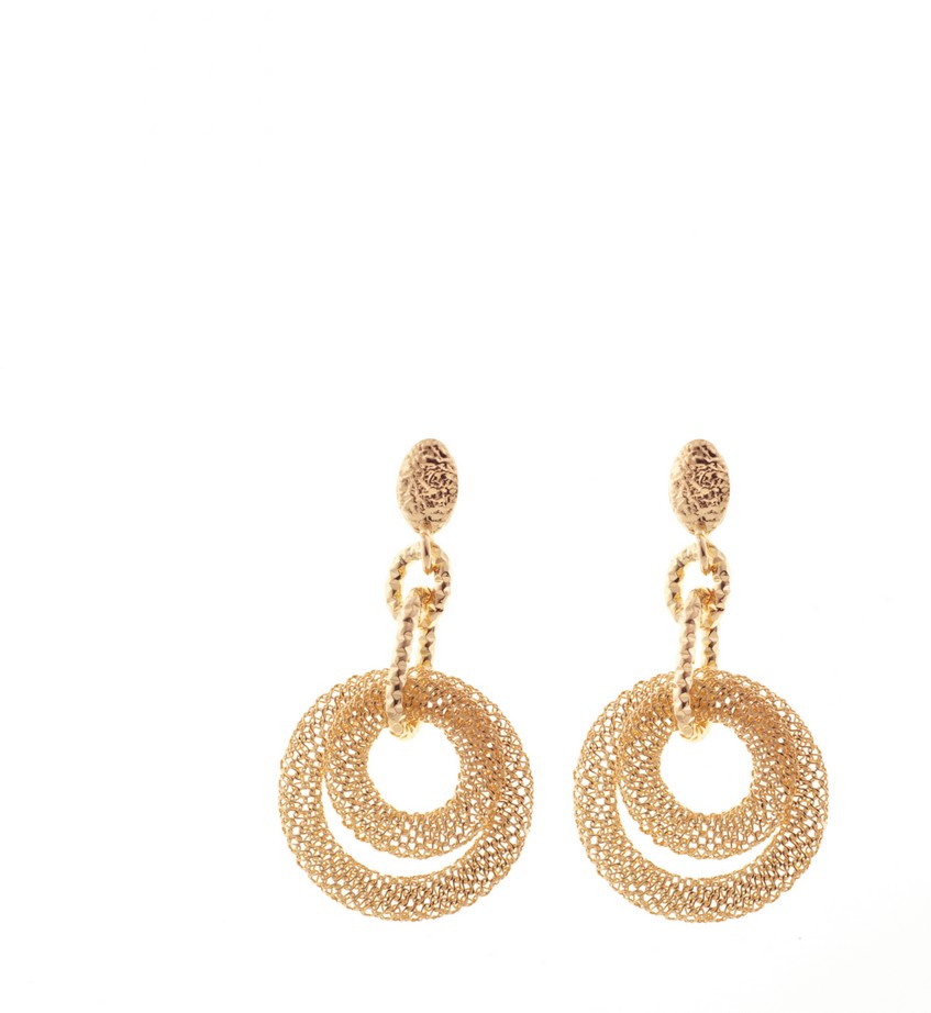 Descrizione: ORECCHINI PENDENTI TRAFORATI FINITURA DORATA
