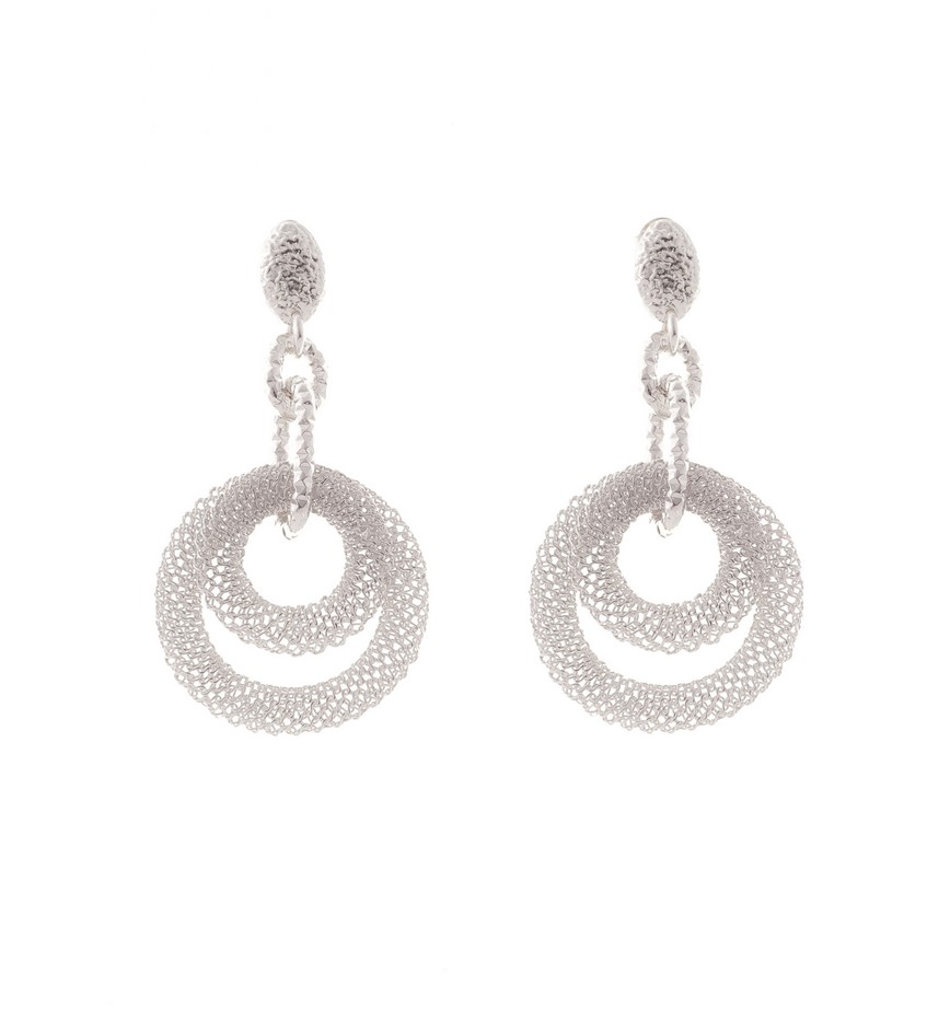Descrizione: ORECCHINI PENDENTI TRAFORATI FINITURA RODIATA