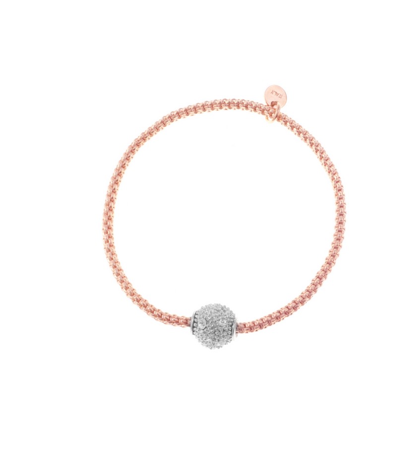 Descrizione: BRACCIALE SEMIRIGIDO FINITURA RAMATA CENTRALE RODIATO CON ZIRCONI