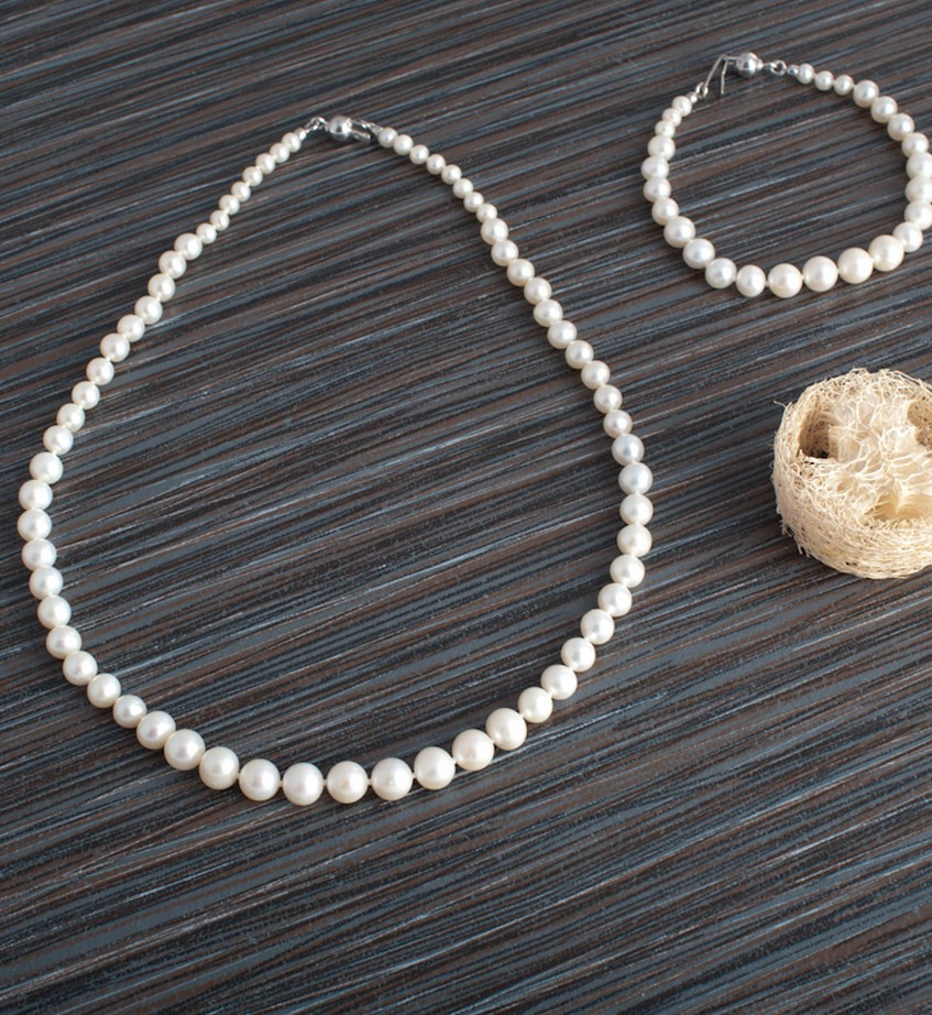 Descrizione: GIROCOLLO PERLE FRESHWATER DEGRADE' MIS 4-4.5 A 7.5-8
