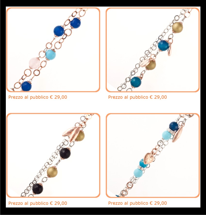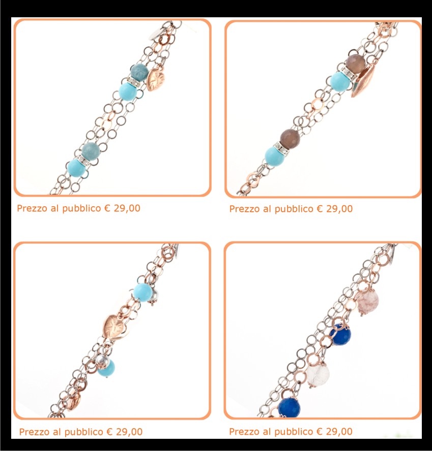 Descrizione: Collezione composta da 8 bracciali in acciaio e pietre dure naturali