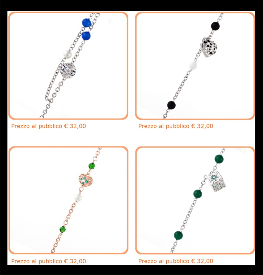 Descrizione: Collezione composta da 8 bracciali in acciaio e pietre dure naturali
