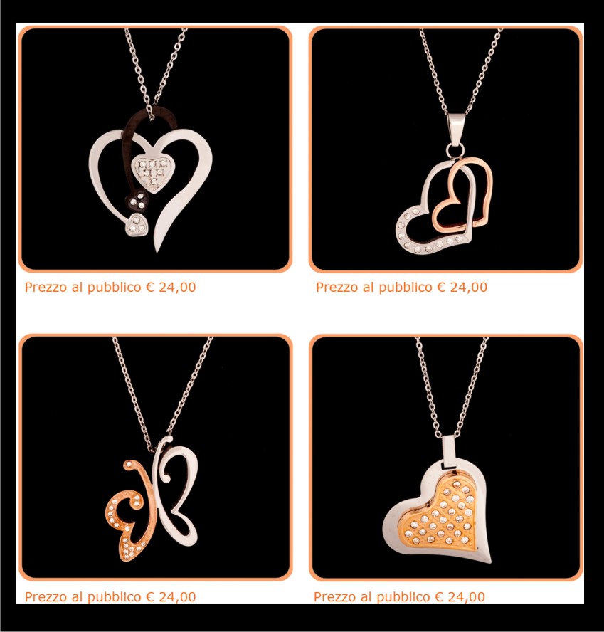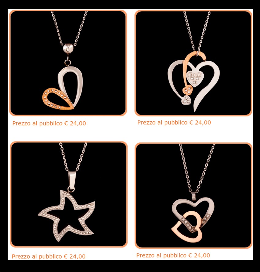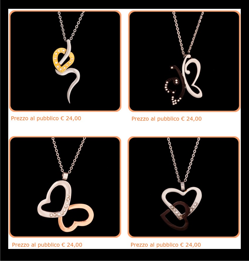 Descrizione: Collezione composta da 14 pendenti in acciaio e rollon da 45 cm